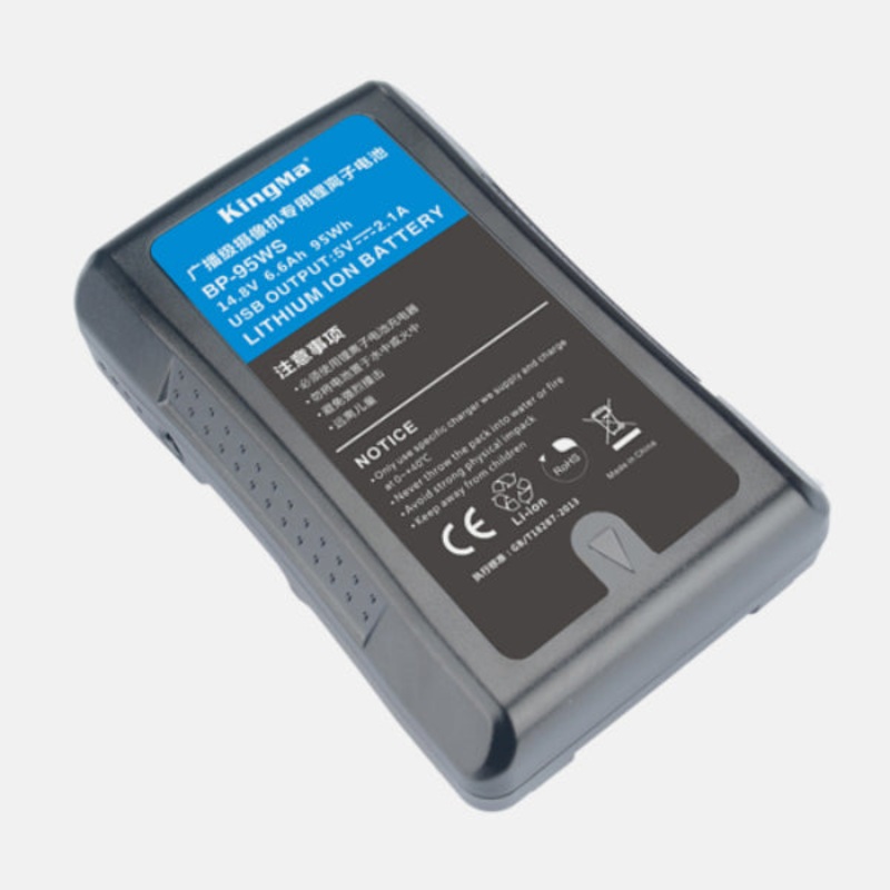 Key Features. 95Wh/6600mAh Lithium-Ion Battery for V-mount cameras. Standard working time on a full charge is approximately 4 hours works with all standard v-mount devices 4-Level LED Indicator displays remaining charge, super-long lasting charge for each