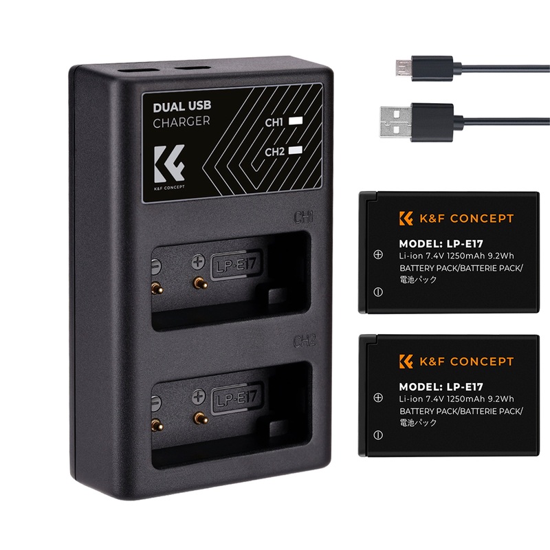 Kit 2 Bateras K&F Concept Tipo LP-E17 + Cargador Dual: Energa sin Lmites