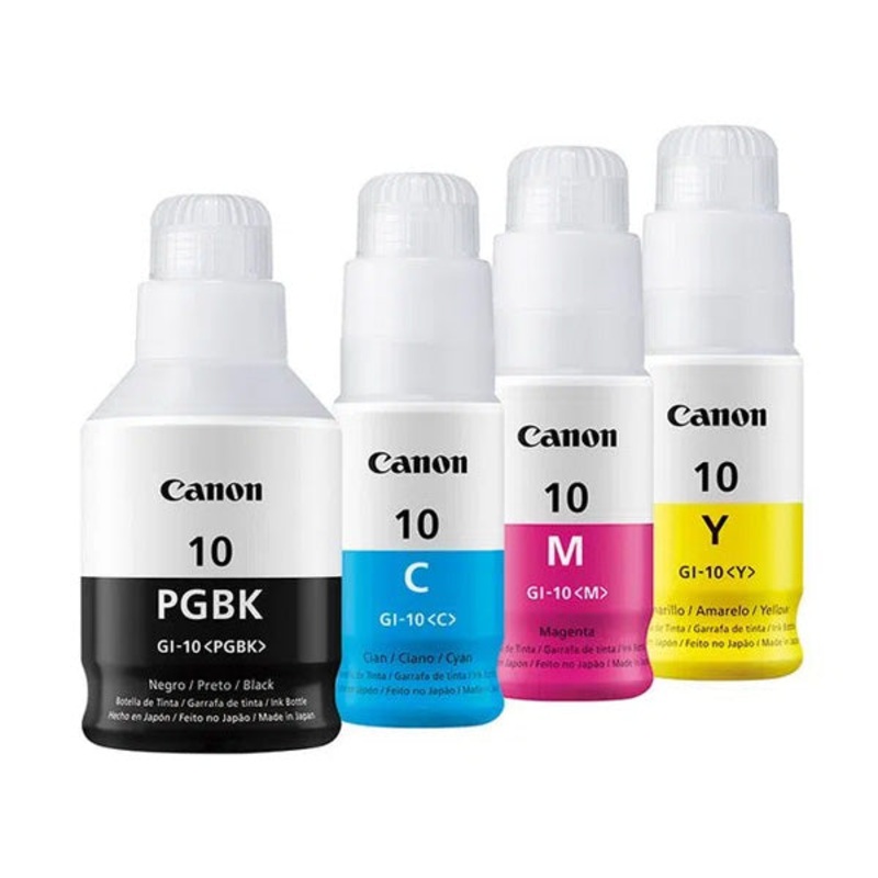 El Kit 4 Botellas de Tinta Canon GI-10 BK/C/M/Y est diseado para quienes buscan imprimir sin interrupciones y con una calidad profesional. Compatible con impresoras Canon de la serie PIXMA G, este set de tintas ofrece gran capacidad y eficiencia, ideal tanto para uso domstico como para negocios.