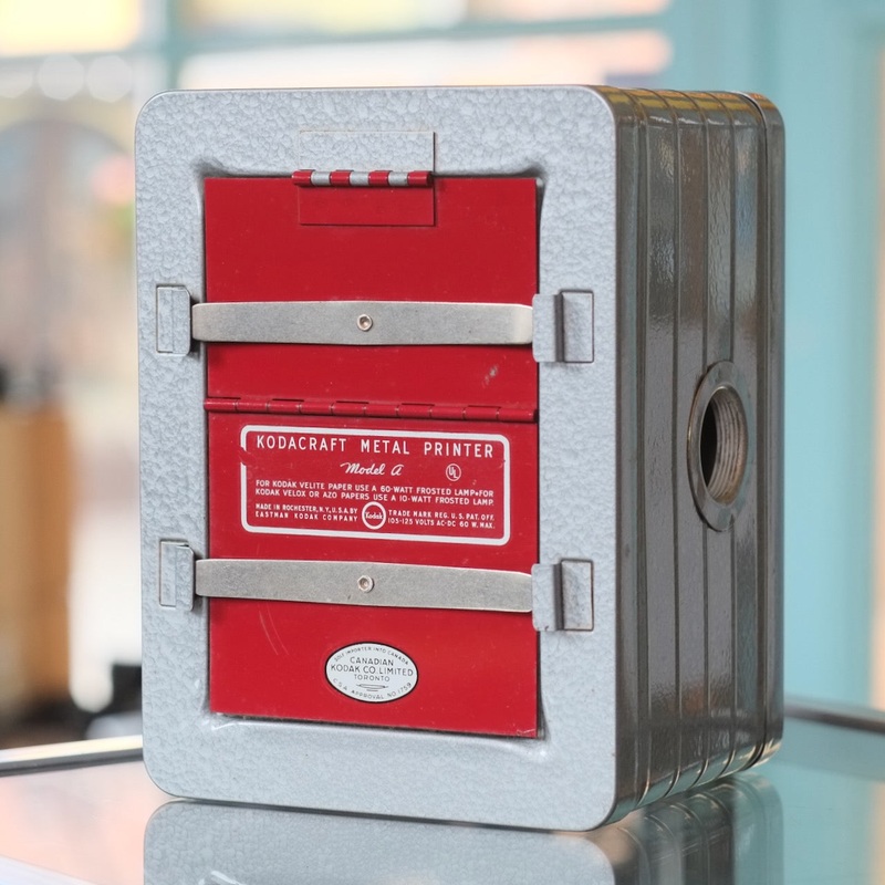This Kodak Kodacraft Metal Printer Model A is not for printing on metal: it's just made out of metal. It's for contact printing on regular photographic paper. But hey, it's a nice little contact printer! Best used for 4x5 film, but you can stick 35mm or me