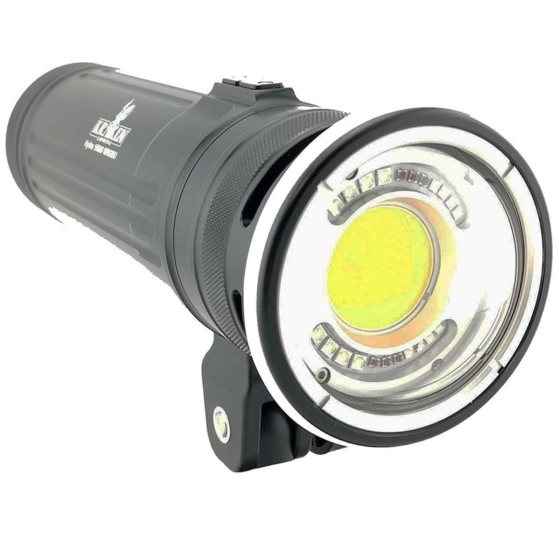Kraken’s most powerful video light! Packing an impressive 15000 lumens youll get all the power you need, and then some! The Hydra 15000 carries much the same features as the rest of the Hydra line. Wide flood, Red, Green, Blue, and UV modes give you many different lighting options all with one single light. The built-in dome on the front gives you an extremely wide and smooth\even beam with soft edges giving you the perfect flood for shooting video. Built-in ability to control with Kraken’s remote makes controlling up to 2 lights at a time from your tray a breeze. You can connect the light to your camera via fiber optic cable to get a burst\strobe of up to 18000 lumens! A sealed water-resistant head means the electronics are safe from floods, if you do have an accident the head should be salvageable as long as you get it out of saltwater ASAP. Easily swap batteries between dives by simply unscrewing the head and slipping in a new battery. Charge up to 2 batteries at a time with the included USB C PD GaN charger, there is an extra USB port also to charge your phone, tablet, camera, or dive torch. This enables you to travel with a lot less clutter! Light includes BOTH YS and Ball mounts, no worry about having to buy additional connectors. All packed in a handy padded carry case. The Hydra 15000 is a videographer’s dream.