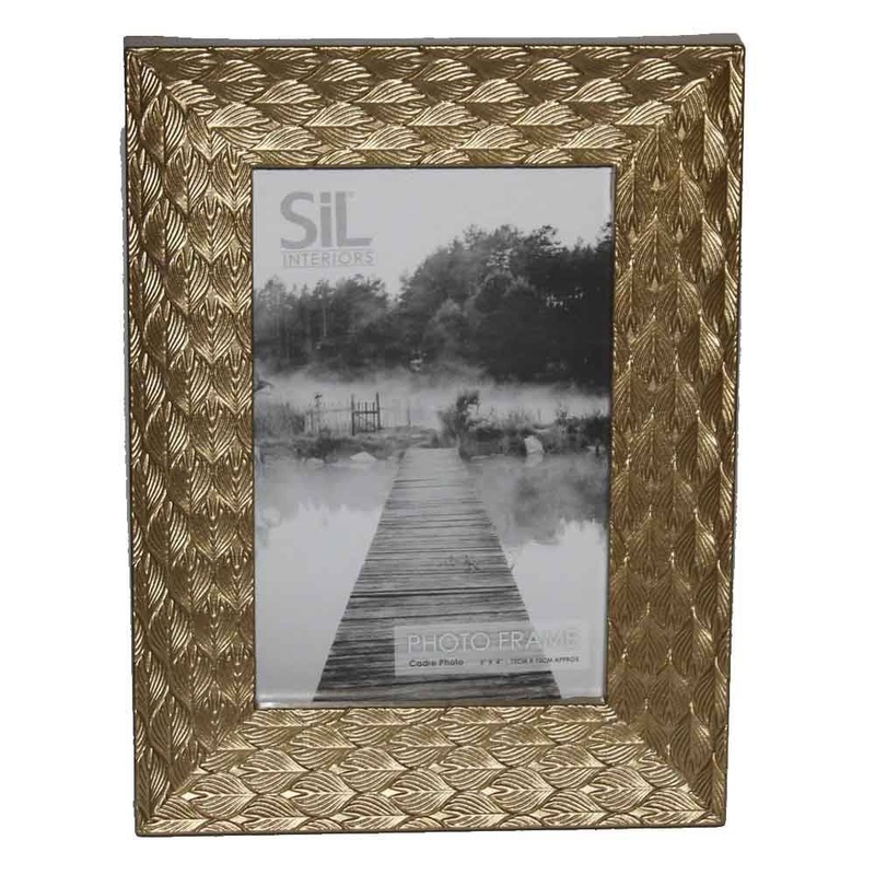 This stunning Leaf Effect 6x4 Gold Photo Frame is perfect for displaying a 6x4-inch photograph horizontally or vertically. Finished in a luxury gold leaf pattern, this plastic frame is a little art deco. Enjoy a beautiful display of your favourite memory,