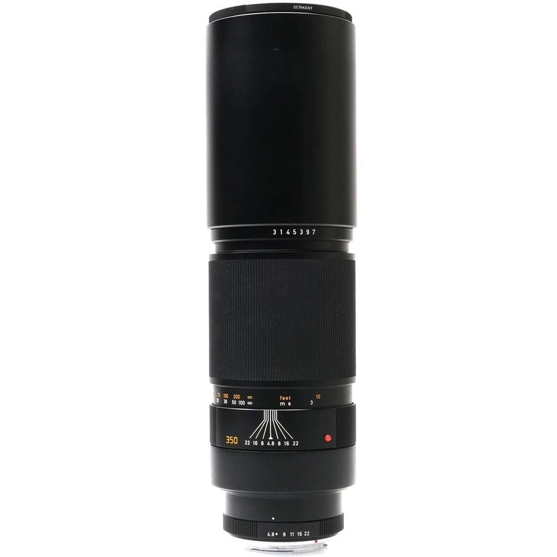 This Leica 350mm f4.8 Telyt-R Lens, #3145397, is in great condition with minor handling wear. I rate it cosmetically a (9+). The focus and aperture rings are smooth, the aperture functions properly, and the glass has no marks or fungus. There's some faint