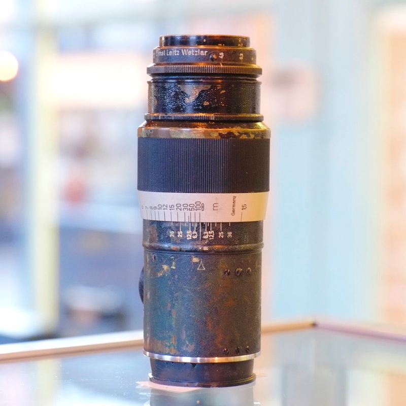 TheLeitz Hektor 13.5cm f4.5 lens might not be the highest-profile lens in the Leica catalogue, but it's still a pretty decent short telephoto lens. This is a post-war, black-paint lens made in 1946, and it's in roughcosmetic condition: there's brassing, pa