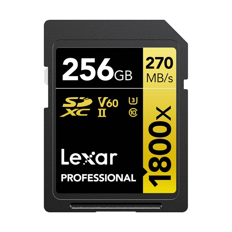 The Lexar 256GB Professional 1800x UHS-II SDXC Memory Card (GOLD Series) takes advantage of the UHS-II bus to support advanced DSLR functions, these include continuous shatter burst as well as raw and JPEG captures.The Lexar 256GB Professional 1800x Memory