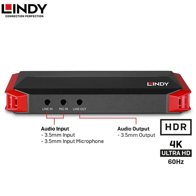 Lindy #43377 Video Capture Card 4K HDMI to USB Type C Records video resolusi 4K@30Hz dan audio dari perangkat sumber HDMI Input and loop-out port mendukung resolusi hingga 4K@60Hz Records WQHD dan FullHD pada resolusi 60Hz Dengan video capture ini, Anda da