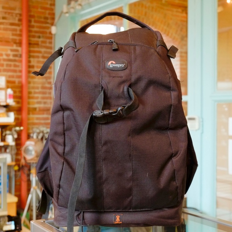 TheLowepro Flipside 500AW is a mid-sized backpack with a secure equipment opening that faces your back, so it can't be opened when you're wearing it. Rugged and well made, with a built-in waterproof cover for harsh weather. In good cosmetic condition, with