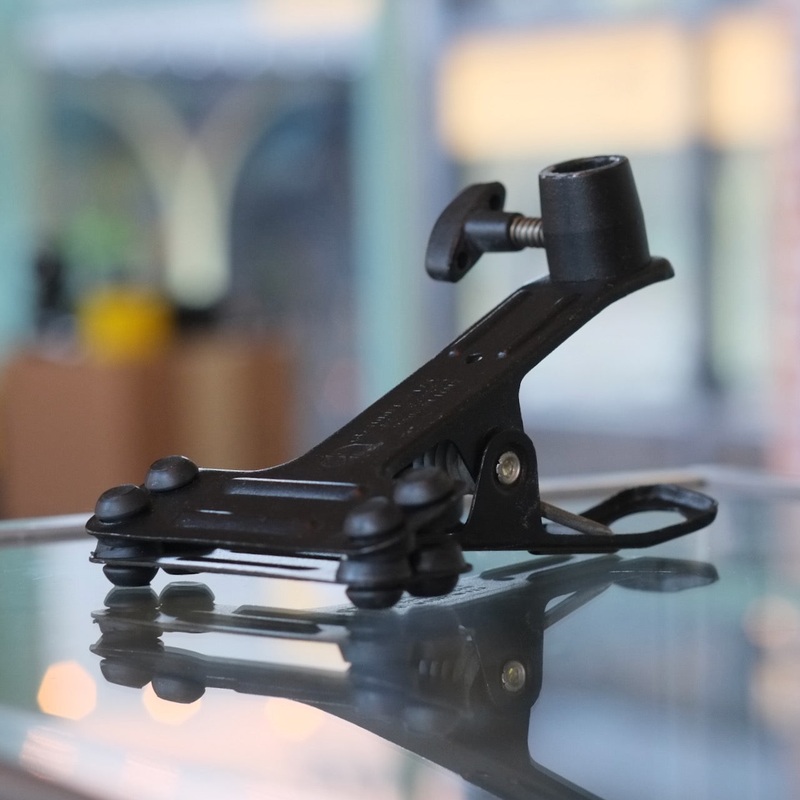 The Manfrotto #175 is a multipurpose spring clamp for studio or location use- just a huge clothespin with some additional mounting flexibility.