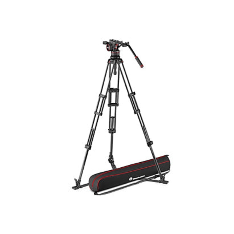 Kit MVKN12TWINGC is comprised of MVHN12AH Nitrotech N12 fluid video head, MVTTWINGC carbon fibre twin leg video tripod with ground spreader, and padded bag.