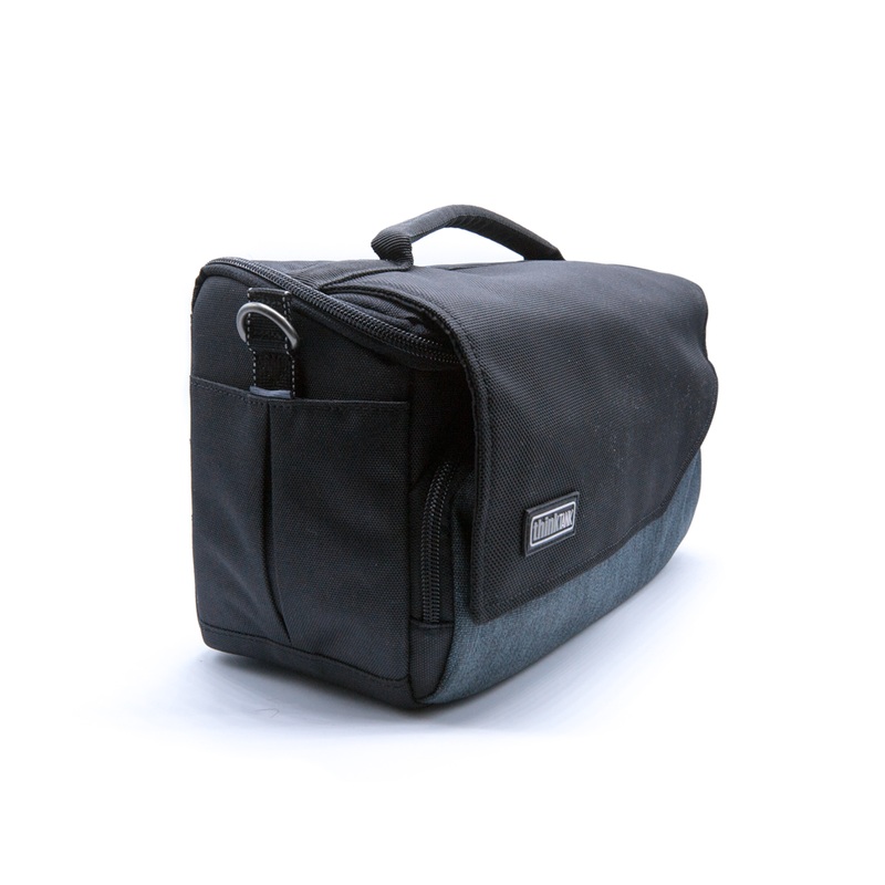 El Think Tank Mirrorless Mover 25i es un bolso de hombro que puede sostener una cmara sin espejo con dos a cuatro lentes y accesorios. El compartimento principal tiene un cierre con cremallera y dos divisores acolchados removibles para personalizar el interior.
