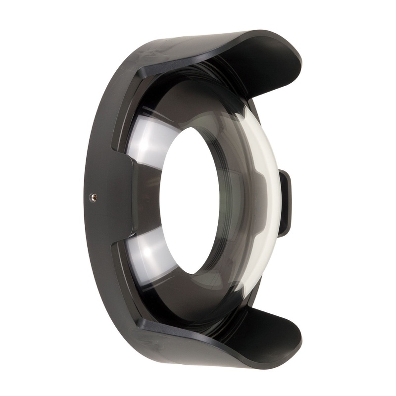 The injection molded acrylic 8-inch diameter dome is specifically designed for underwater photography to provide superior optical performance. Compared to a smaller 4- or 6-inch diameter dome, the larger diameter reduces edge distortion on pictures taken with certain super-wide angle lenses and makes shooting over-under shots (half-in, half-out of the water) easier. Domes are ideal underwater for shooting wide angle lenses. If you’re shooting a macro lens, we recommend using the Modular Glass Flat Front instead.