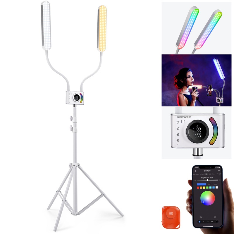 DescriptionFlexible RGB Esthetician Light- NEEWER BH40C is a 36W RGB esthetician LED fill light for beauty, makeup, eyelash extensions, manicures, tattoos, live streams, vlogs, portraits, and more. It has 528 LEDs, CRI98+ for high color fidelity, and 4600l