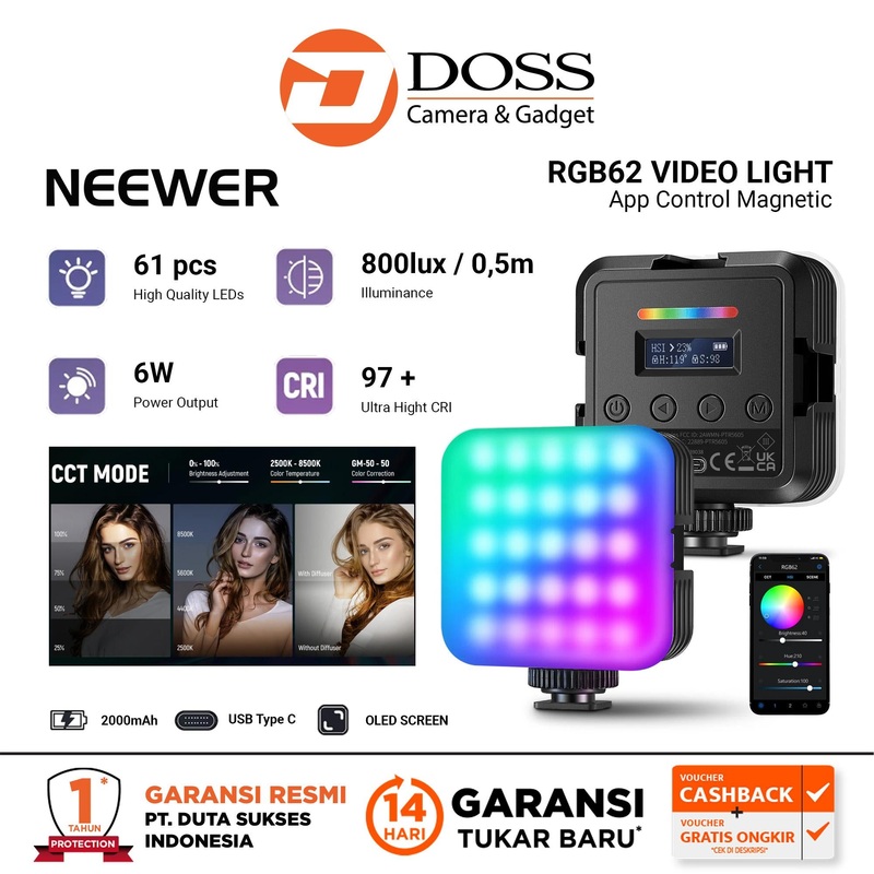 Neewer RGB62 App Control Magnetic RGB Video Light