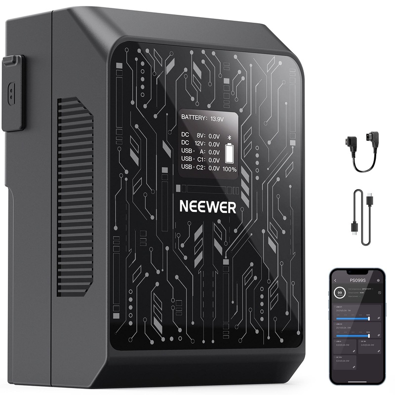 DescriptionUpgraded Smart APP Control- Connect the PS099S V mount battery to the 'NEEWER' app to view real time input and output power levels and monitor remaining battery life. It also enables output adjustments for each port to optimize power distributio