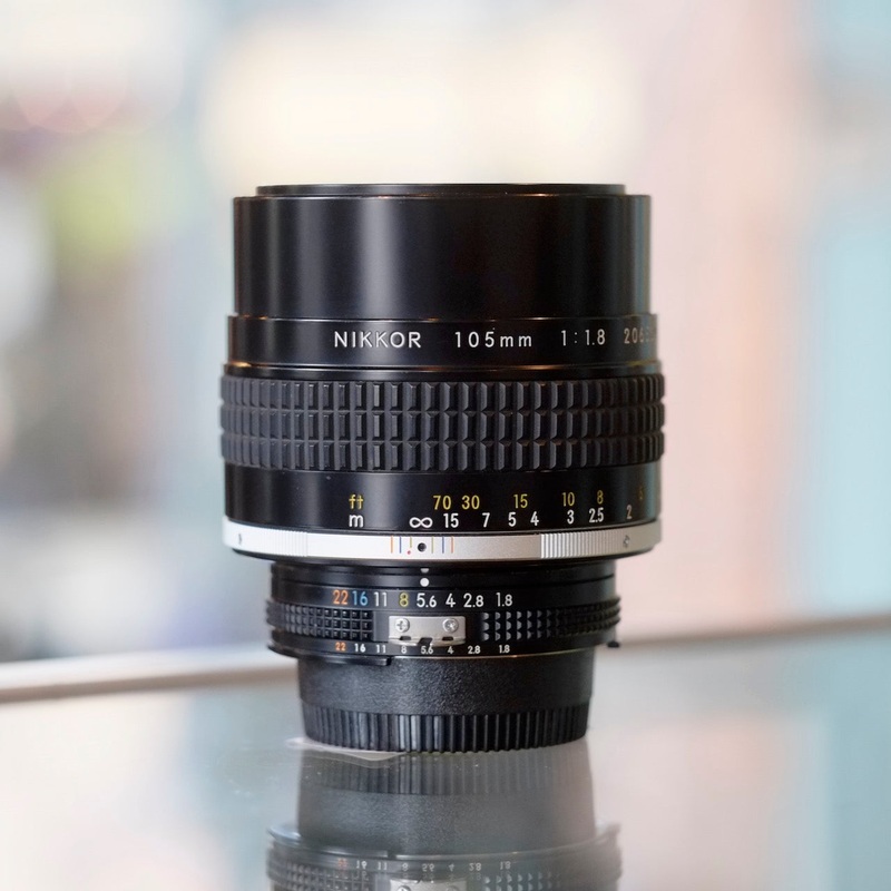 The Nikon 105mm f1.8 AI-S Nikkor is a classic short telephoto lens for portraits or, I mean, whatever you want to do. In very, very cleancosmetic condition, with only very minor wear; There is minorinternal dust, smooth focusing, and the diaphragm is clean