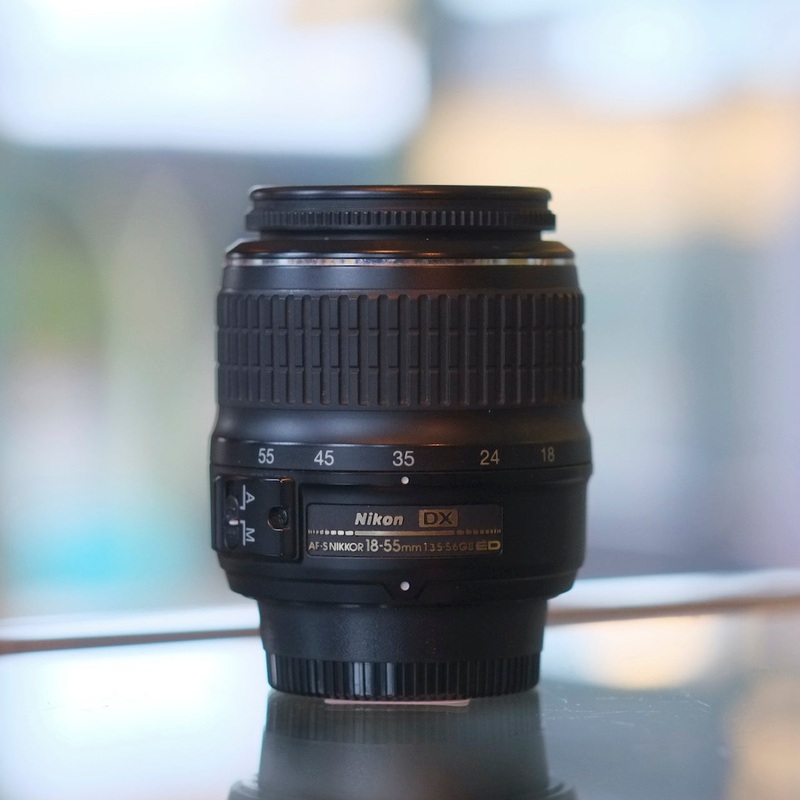 The Nikon 18-55mm f3.5-5.6G II ED AF-S DX Nikkor is a lightweight, multi-purpose zoom lens for Nikon DX format DSLR cameras. Clean glass, good function, light cosmetic wear.