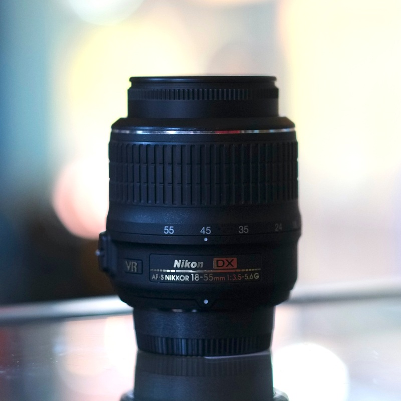 Nikon DX 18-55mm f3.5-5.6G VR ED AF-S Nikkor lens for Nikon DX-format digital SLR cameras. A good quality standard zoom lens in excellent condition, with an effective image stabilizer system for steadier shots.