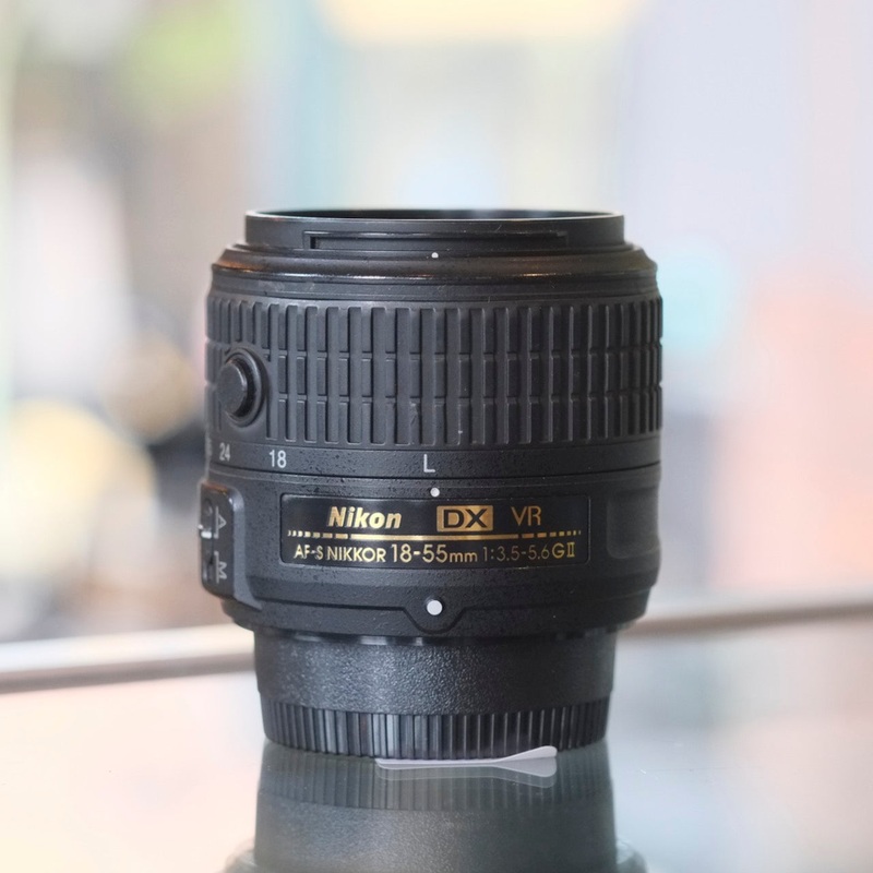 Nikon 18-55mm f3.5-5.6GII ED AF-S DX Nikkor lens for Nikon DX-format digital SLR cameras. A good quality standard zoom lenswith some cosmetic wear, clean glass and good function.