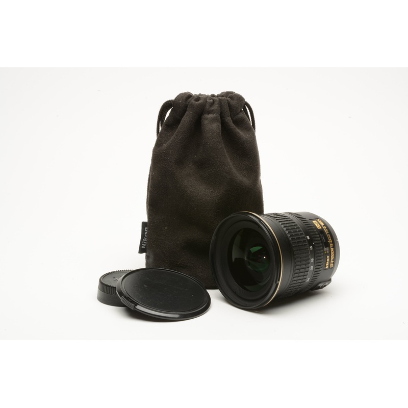 Excellent++ Condition, USA VersionNikon AF-S Nikkor 12-24mm f4G ED DXIncludes Nikon Pouch + capsSerial #US200789Cosmetically very clean, minimal signs of use, no marks or scratchesAll functions are tested and in good working conditionOptics are clean, no m
