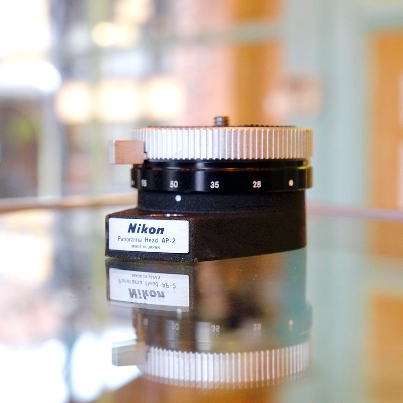 The Nikon AP-2 panoramic head is a compact, easy to use device that lets you easily take multi-shot panoramas with lenses from 28mm to 105mm. It sits between the tripod head and your camera, and features adjustable click stops that will automatically space