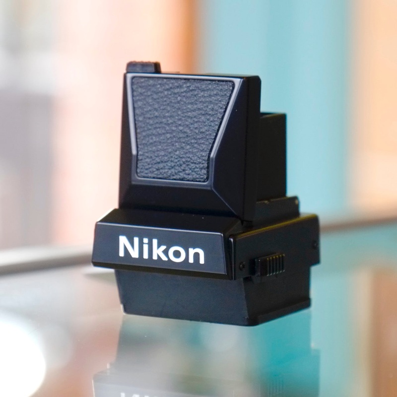 The Nikon DW-3 is a waist-level viewfinder for the Nikon F3. Finally, you can take a picture without having to bring your F3 up to eye level! The future is now. This DW-3 is in excellent condition, with only minor cosmetic wear.