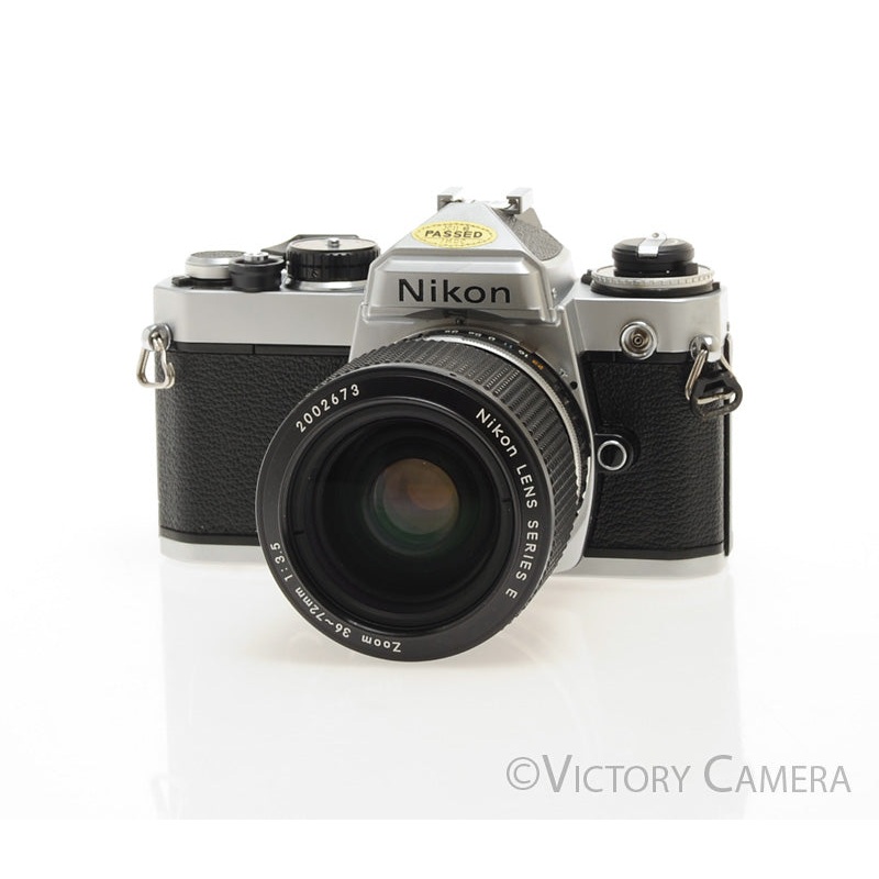 Nikon FE Chrome 35mm Film Camera w/ 36-72mm Lens -New Seals- [EXC]