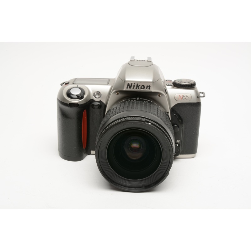 Excellent++ Condition, Fully TestedNikon N65 35mm Champagne Camera W/Nikon AF 28-80mm F3.3-5.6D Zoom LensW/Lens Cap + Wide neoprene Tamrac StrapBody Serial #2121770,Lens Serial #US2338636Cosmetically Very Clean, Minimal signs of use on cameraGreat grip, no