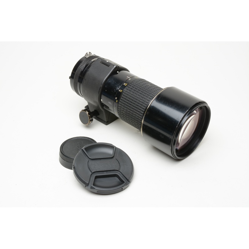 Excellent+ ConditionNikon Nikkor MF 300mm f4.5 ED IF AIS telephoto lensw/Lens caps and tripod collarSerial #215655Cosmetically shows heavy use, marks and scratches on lens barrel - some brassing at knobsAll functions are tested and in great working conditi