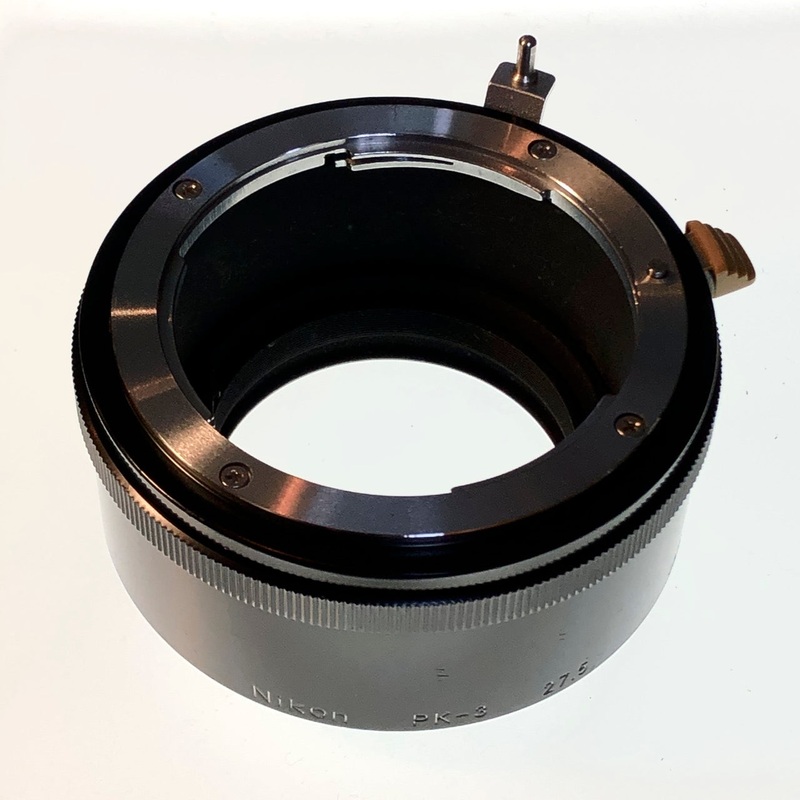 The Nikon PK-3 is a 27.5mm extension tube for manual focus F-mount lenses. Will mount to any F lens and body, but transfers aperture information via old-school pre-AI bunny ears, so depending on your camera and/or lens, you may need to meter stopped-down o