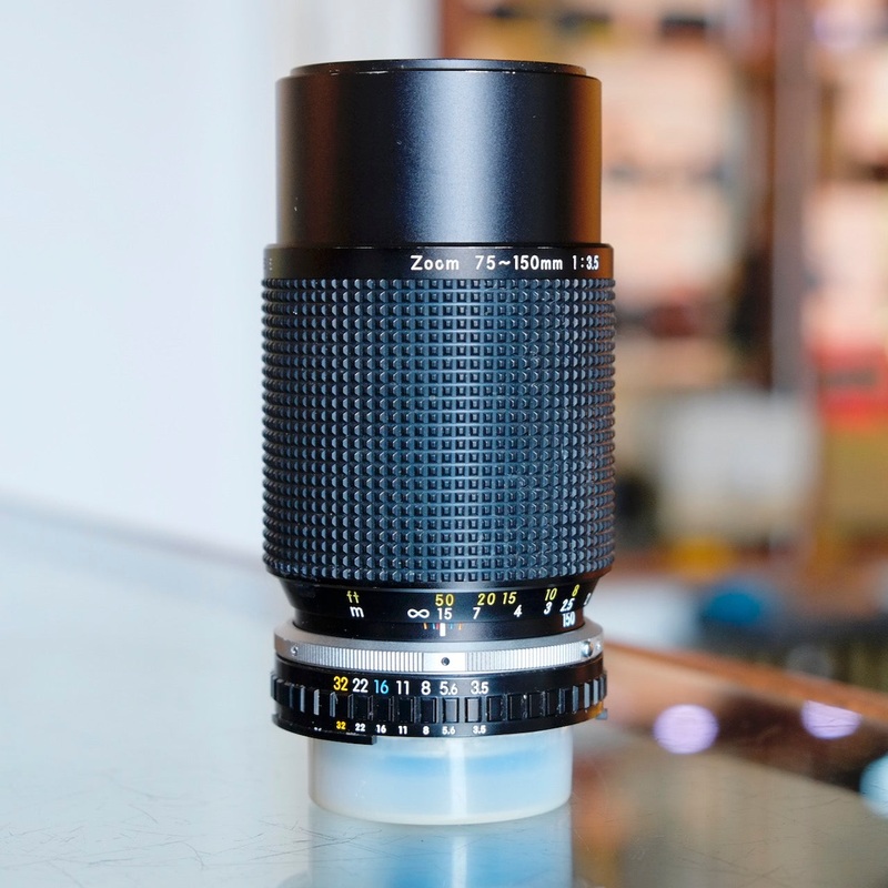 The Nikon Series E 75-150mm f3.5 is a good basic manual focus zoom lens for the Nikon F mount. Nothing fancy! Clean glass, good function, excellent cosmetic condition with very minor wear.