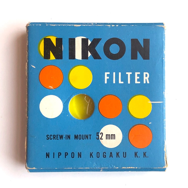 This is a good quality Nikon Y48 yellow filter in the original, very mod polka-dot packaging.