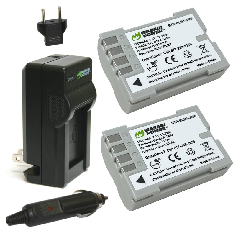 The Wasabi Power BLM1 & BLM5 battery and charger kit includes 2 batteries and one charger with a European plug and car adapter. All items meet or exceed OEM standards and come with a 3-year manufacturer warranty.Batteries replace: Olympus BLM-1, BLM-01, PS