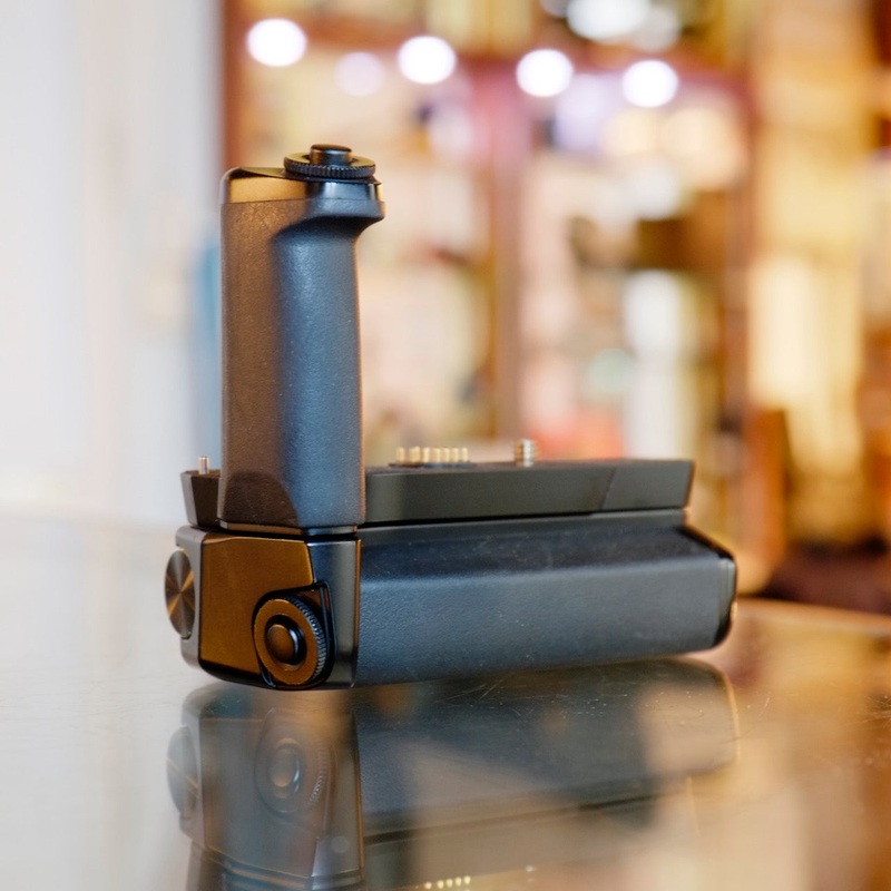 The Olympus HLD-6G is a handgrip for the Olympus OM-D E-M5. By itself, it gives the camera a more positive grip and repositions the shutter release, which is nice for larger-handed folks. The HLD-6P is a battery holder which attaches to the bottom of the 6