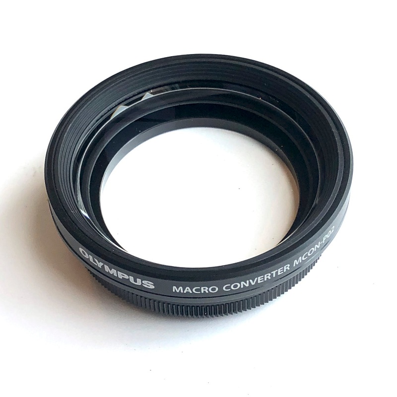 The Olympus MCON-P02 is a close-up diopter that attaches to select Zuiko DIgital lenses- and potentially others with 46mm or 37mm filter threads, though no guarantees. In excellent condition, with original caps and box.