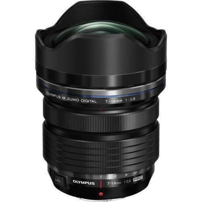A versatile wide-angle zoom for Micro Four Thirds mirrorless cameras, the M.ZUIKO Digital ED 7-14mm f/2.8 PRO Lens from Olympus is a 14-28mm equivalent lens featuring a constant f/2.8 maximum aperture for consistent performance throughout the zoom range. Various aspherical, extra-low dispersion, and high-refractive index elements are incorporated within the design, and help to minimize chromatic aberrations and distortions for increased clarity and sharpness. Additionally, a ZERO coating has been applied to elements to control flare and ghosting for improved contrast and color fidelity. A weather-resistant design benefits handling in trying conditions while an L-Fn button offers lens-based control over various settings. As a fast, high-performance wide-angle zoom, this Micro Four Thirds lens pairs an optimized optical layout with refined physical details to excel in a variety of working conditions.