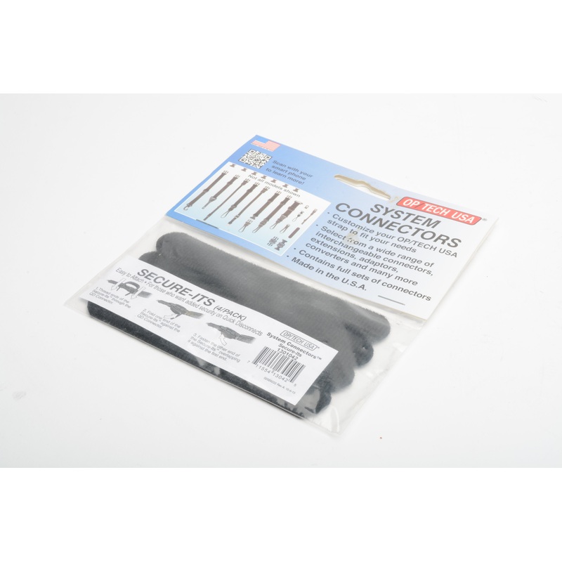New in packOP/TECH USA Secure-Its (4-Pack, Black)Fits All Op/Tech QD StrapsSecure Method for Locking a QD0.75-4.5" Hook and Loop TabsSoft Connectors Won't SnagBrand new - Never used