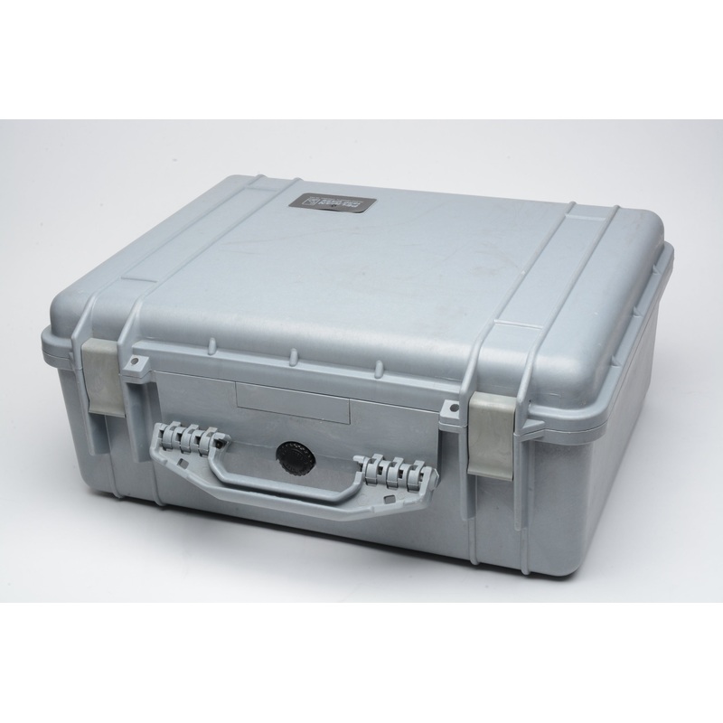 Excellent++ ConditionPelican 1550 Gray weatherproof case 20.7 17.2 8.4"Cosmetically very clean, minimal signs of useLooks and operates as newSolid hinge, handle, and clipsCut-up foam inside as pictured
