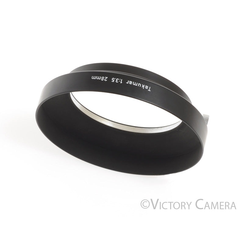 This is the metal lens shade for the Pentax 28mm f3.5 lens. It has a 58mm clamp mount. It is in excellent condition with light wear and works perfectly. The leather case is included. SKU: 240629-14