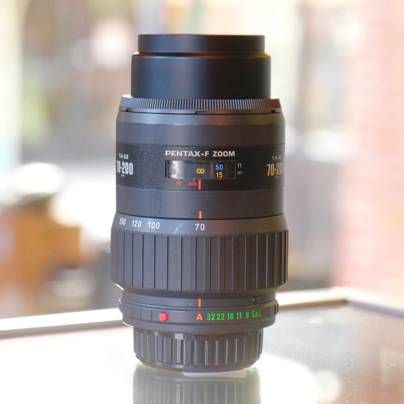 The Pentax-F Zoom 70-200mm f4-5.6 lens is an autofocus full-frame lens for the Pentax K mount. Its got an aperture ring, and provides fast autofocus on compatible cameras, but can be used on any K mount camera without AF, too. In good condition, with minim
