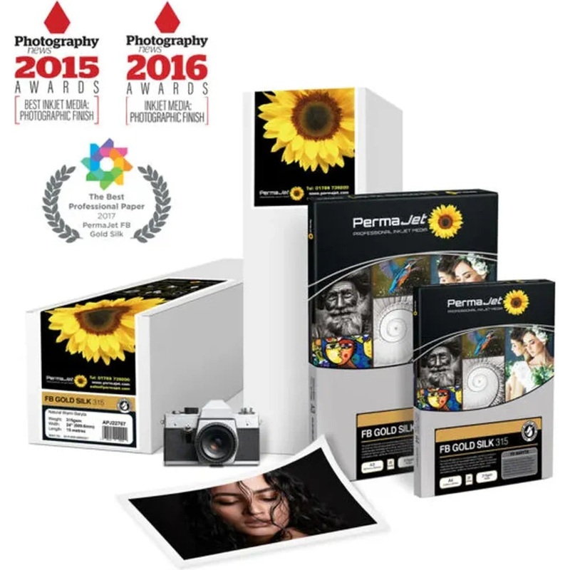 PermaJet FB Gold Silk 315 is a fibre-based inkjet paper with a luxurious satin finish and natural warm base, designed to deliver exceptional print quality. Its award-winning formulation offers a remarkable Dmax, producing deep, velvety blacks with outstand