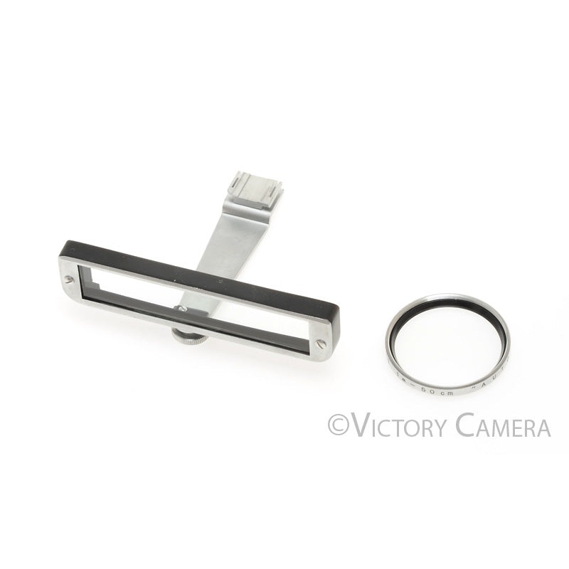 This is a nice close up adapter for the rangefinder Nikon Nikkor 50mm f1.4. It is in excellent+ condition with light wear and works perfectly. The glass is clean and scratch-free with no haze, fungus, nor other issues. The original box is included. SKU: 25