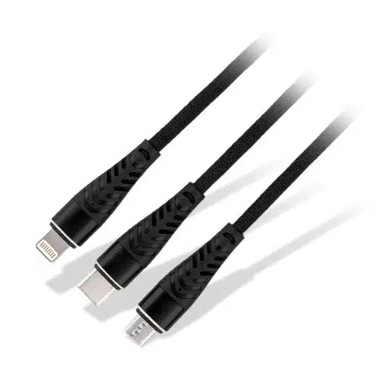 Stay connected and powered up with the Red-E Time Warp 3-In-1 Cable! This versatile, durable cable features Micro USB, USB Type-C, and 8-pin Apple Lightning connectors, allowing you to charge up to 3 devices simultaneously. With a 1.25m length and a rugged