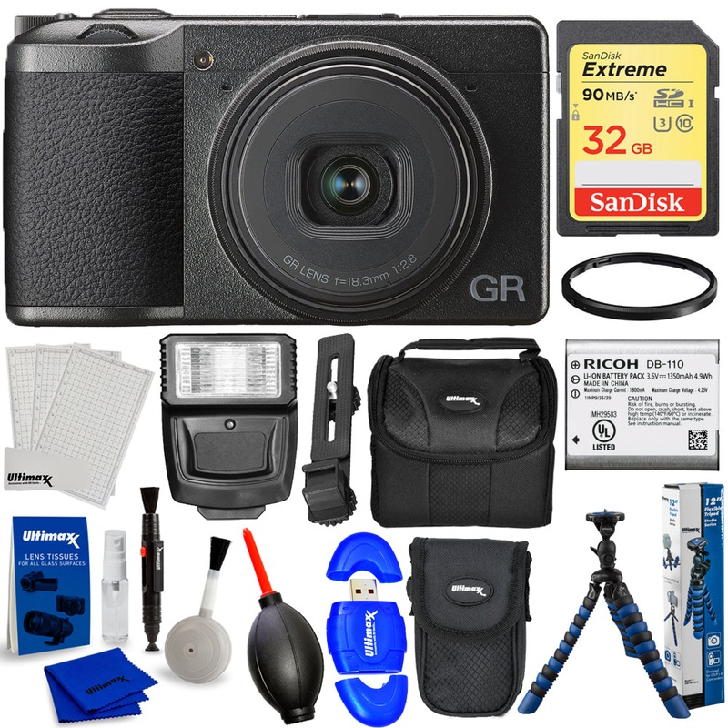 Ricoh GR III Digital Camera 15039 + 32GB + Tripod + Cases Bundle