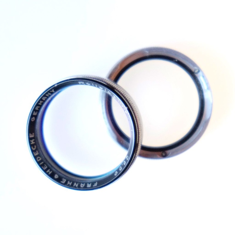 Rollei Rolleinar 1 close-up lens set for Bay 1 filter mount, with a pair of Rolleinar lenses and Rolleiparkeil viewing prism.
