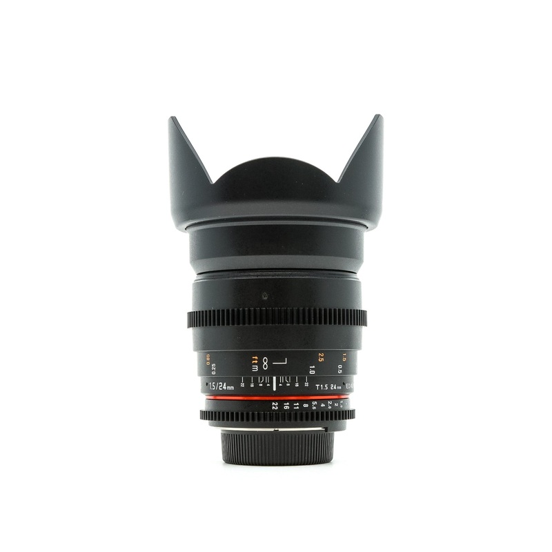 Samyang's 24mm T1.5 ED AS IF UMC II VDSLR is a wide-angle, manual focus cine lens designed for full frame and smaller sensor sizes and is known for its beautiful bokeh. It has been carefully engineered for professional film and video work, with the focus g