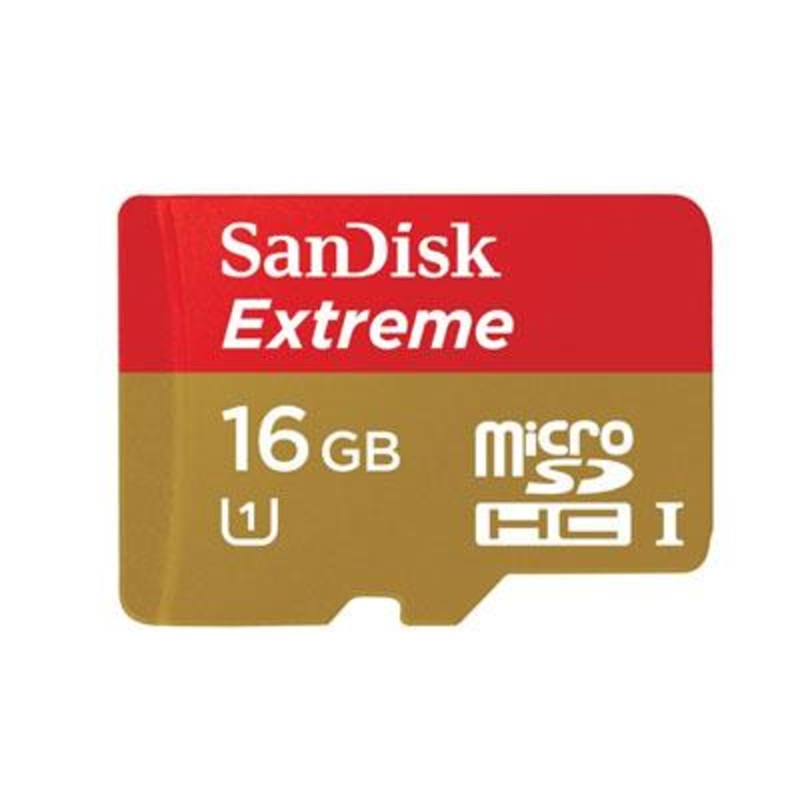 SanDisk 16GB Extreme Micro SDHC UHS-I Card -80mbsGet extreme speed and performance with the SanDisk Extreme microSDHC. The perfect companion for your smartphone, tablet, or camera, this memory card delivers Full HD video (1080p) recording and playback, and