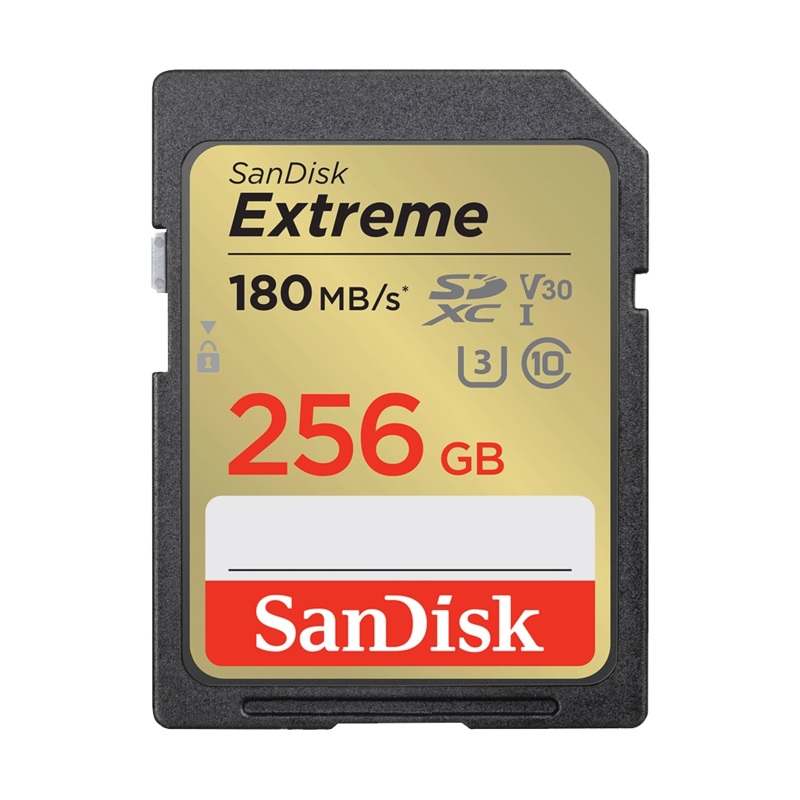 The SanDisk 256GB Extreme 180MB/s UHS-I SDHC Memory Card is the perfect memory card for recording 4K UHD video and sequential burst mode photography. With read speeds of 180MB/s and a maximum write speed of up to 90MB/s, you simply set to capture high-reso