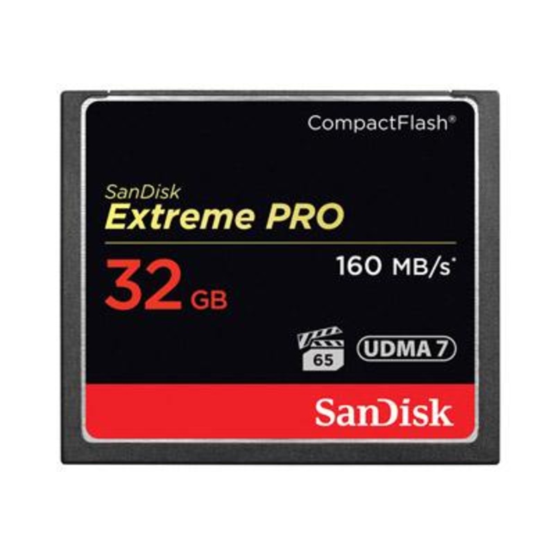- Sandisk 32GB Extreme Pro Compact Flash – 160mb/s (UDMA7 and VPG 65)