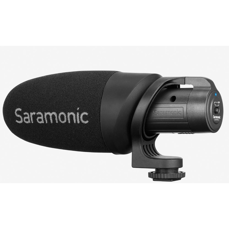 CamMic+Lightweight On-Camera MicrophoneThe Saramonic CamMic+ is a lightweight directional condenser microphone which adds high-quality audio to your DSLR cameras and camcorders. The CamMic+ features 80Hz low-cut filter. The integrated shock mount isolates