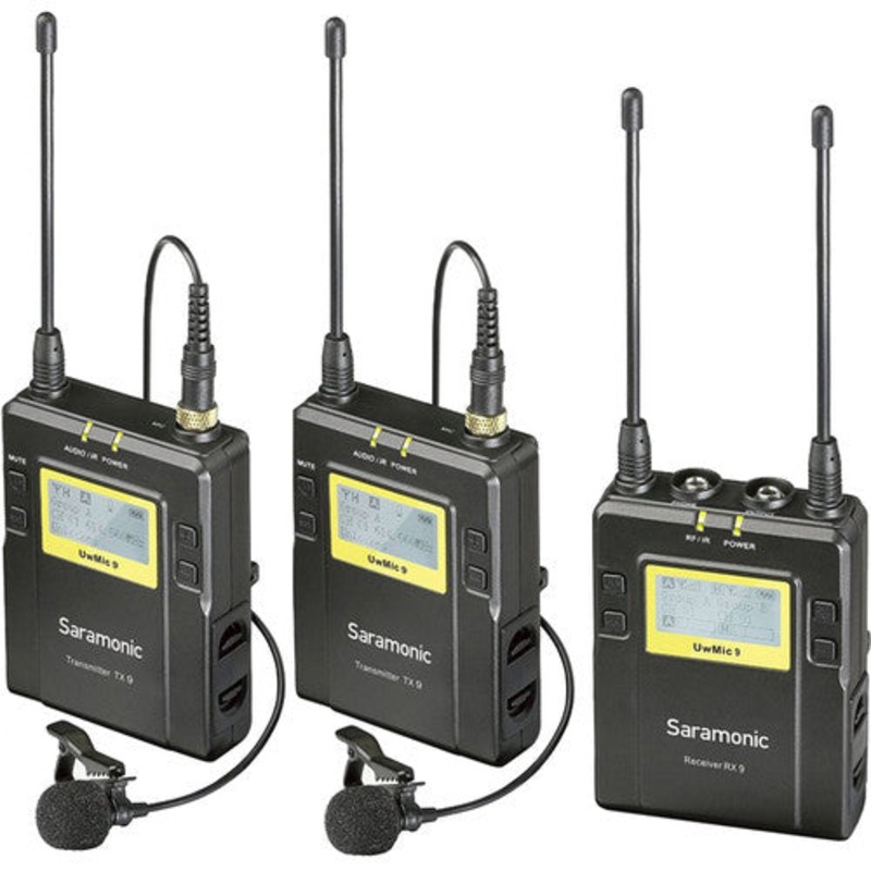 TheUWMIC9 RX9 + TX9 + TX9, 96-Channel Digital UHF Wireless Dual Lavalier Mic SystemfromSaramonicis a portable, camera-mountable wireless system for capturing audio with dual subjects. It can be used in several environments for video, field recording, interview, broadcast TV, and ENG applications.